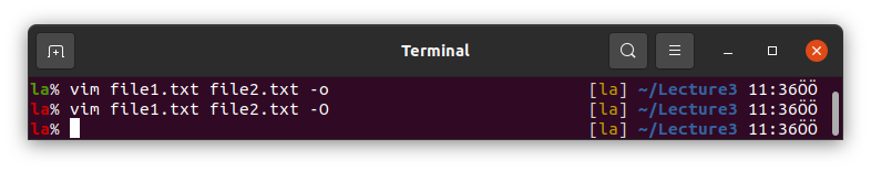 Here -o option splits view horizontally and (capital) -O splits it vertically.