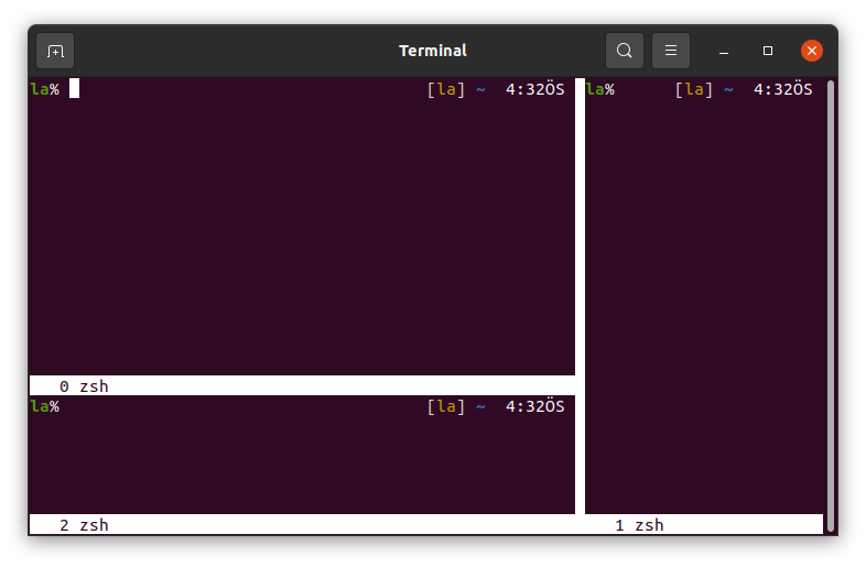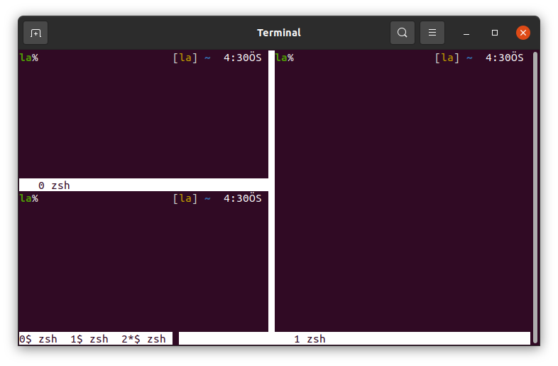 ctrl+z and c opens new terminal on the current half. You can see the numbres at the bottom-left corner of each space.