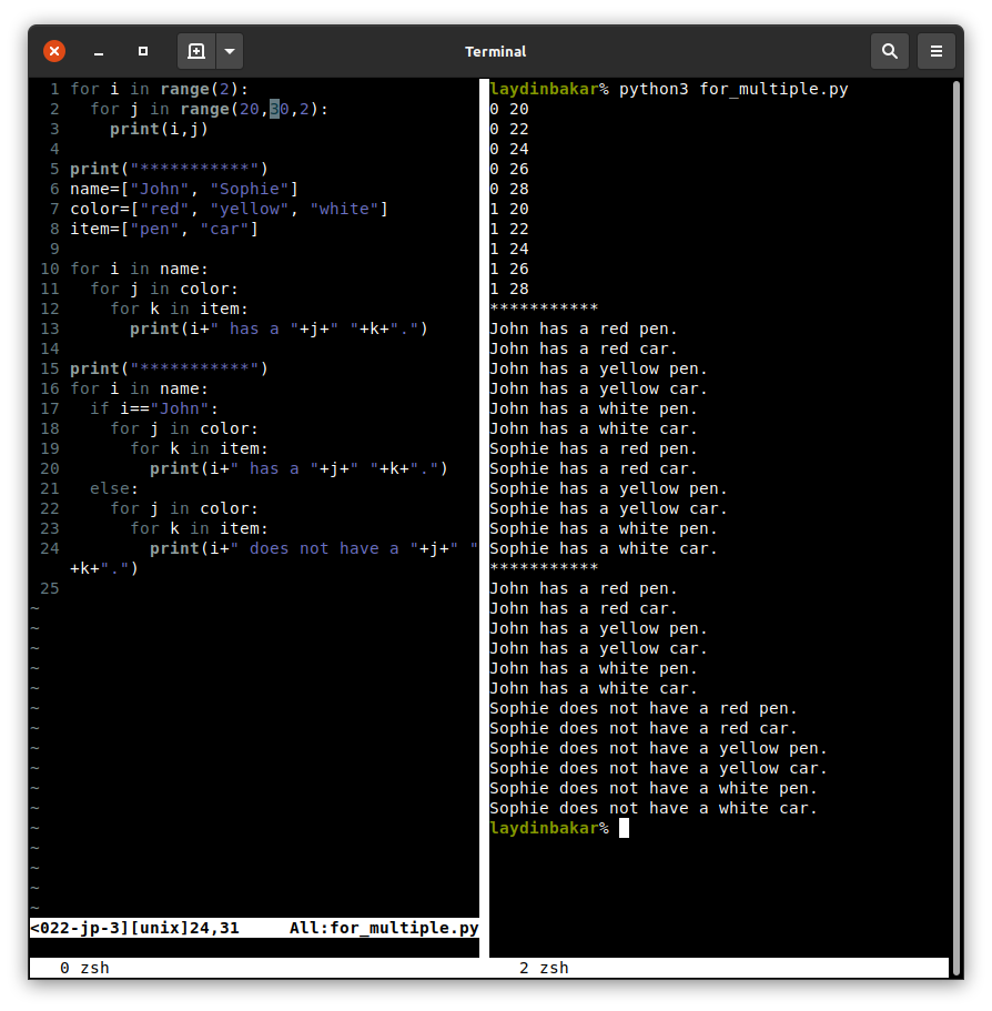 for loopfor loop is used for iterating over a sequence. See the script below.